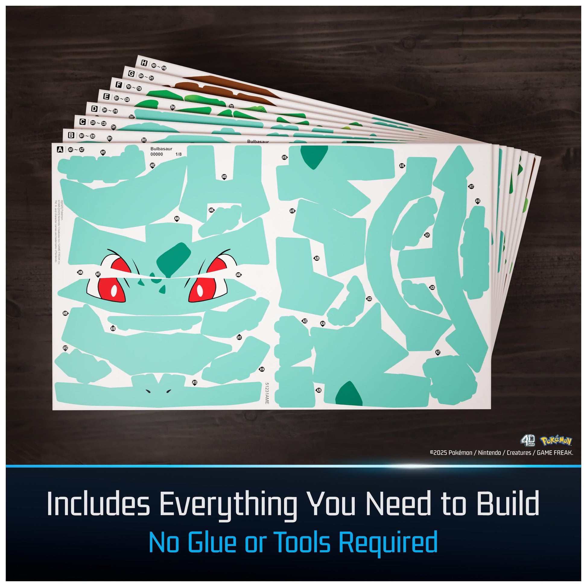 Details: This 4D Build Bulbasaur model kit is beckoning to be displayed on your shelf. Embark on an adventure with our collection of Pokémon 3D puzzles. This Bulbasaur 3D puzzle from the nostalgic cartoon includes all the details of the original grass Pokémon fans will love, including its red eyes and big, green bulb on its back. You get 16 sheets with 195 detailed punch-out pieces and easy-to-assemble instructions. No puzzle glue or tools required. The Bulbasaur 3D puzzle model kit measures 9.3"x11.4"x9.4" (23.5.x29x23.9cm). Add a new Pokémon figure to your game room decor or as an educational toy for kids. Display your Bulbasaur puzzle model kit with pride. For young fans of Pokémon and Bulbasaur, this model kit will be an epic gift for any teen and adult fan of the animation. Shop 4D Build for more toy building sets and puzzles for ages 12 and up as birthday gifts for men, gifts for her, gifts for women, gifts for mom, and gifts for him. Create your own epic masterpiece at home with 4D Build.